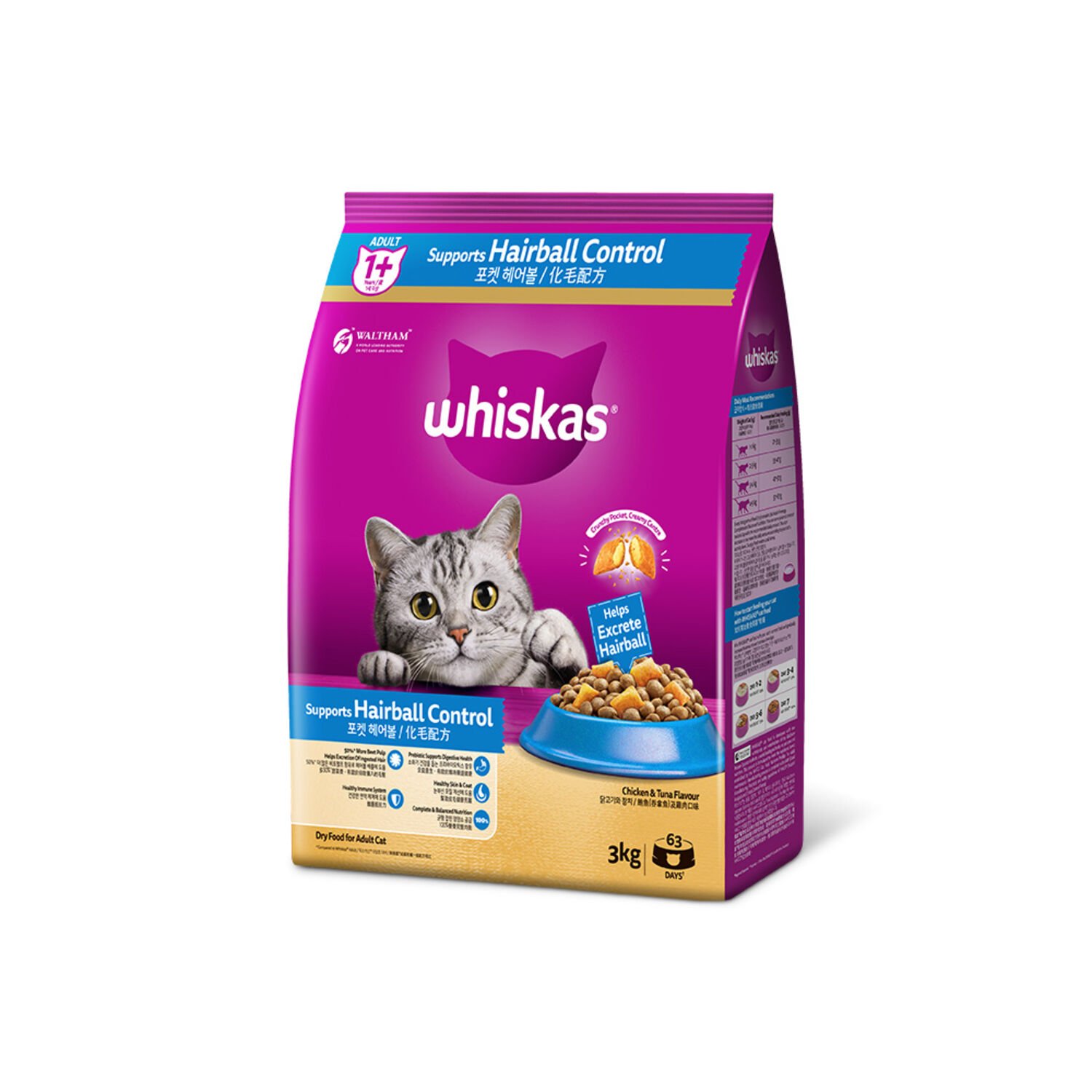 위스카스 사료 어덜트 헤어볼 닭고기와 참치 3kg