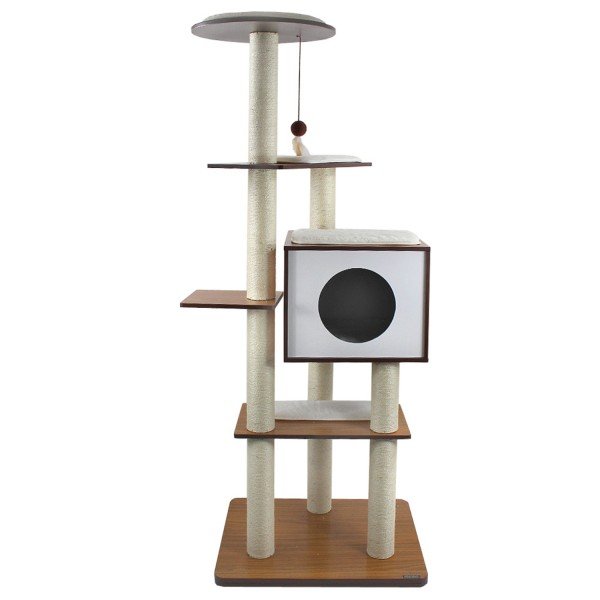펫모닝 4단 중간 하우스 원목 캣타워 PMC-6514 (방석&매트 포함
